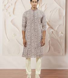 Lavender embroidered fox georgette kurta pyjama set | festive party wear