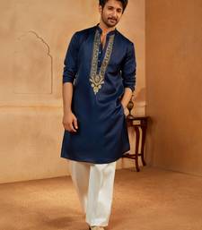 | Product Name | Navy Blue Embroidered Silk Blend Kurta With Cream Wide Leg Palazzo | Wedding & Festive Wear | |