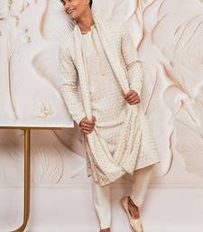 | Product Name | Off White Chikankari Embroidered Kurta Set With Cream Satin Pyjama & Embroidered Dupatta | Eid Wedding Wear | |