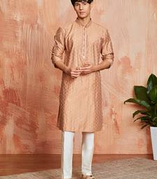 | Product Name | Peach Silk Blend Jacquard Kurta With Cream Pyjama | Festive Wedding Summer Wear | |