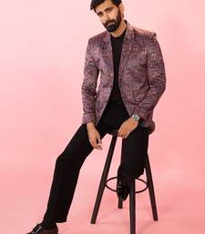 Make Royalty Your Signature At Every Celebration With The Vastramay Men's Purple Velvet Paisley Digital Print Blazer & Black Straight Pant Co Ord Set. The Blazer Is Woven From Sumptuous Velvet With An All Over Pile Finish In A Deep Purple Hue, Showcasing An All Over Paisley Digital Print That Delivers Rich Ethnic Artistry With A Contemporary Edge. Design Details Include A Notch Collar, Waist Length Tailored Silhouette, Full Sleeves, Button Closure, 2 Curved Flap Pockets With Button Opening, A Welt Pocket, A Back Slit, And A Luxurious Satin Lining. The Paired Black Straight Pant In Imported Suiting Lycra Provides A Comfortable, Flexible Fit With Zip And Button Closure, Inseam Pocket, Welt Pocket, And Straight Pocket. This Co Ord Set Creates A Bold Purple Over Black Contrast Ideal For Weddings, Navratri, Parties, And All Regional Festive Celebrations. Available In Sizes 36–42.