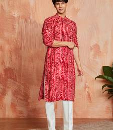 Red foil bandhani digital print rayon kurta with cream viscose pyjama | bold festive ethnic wear