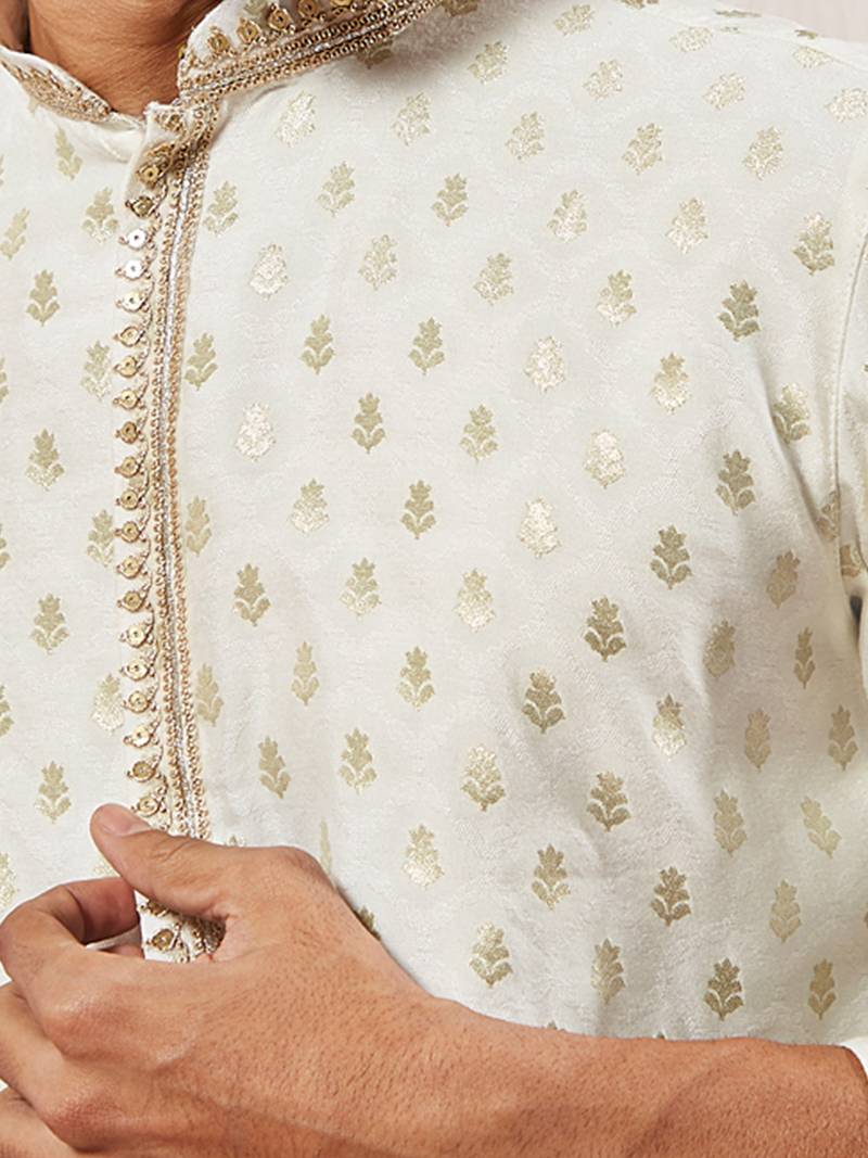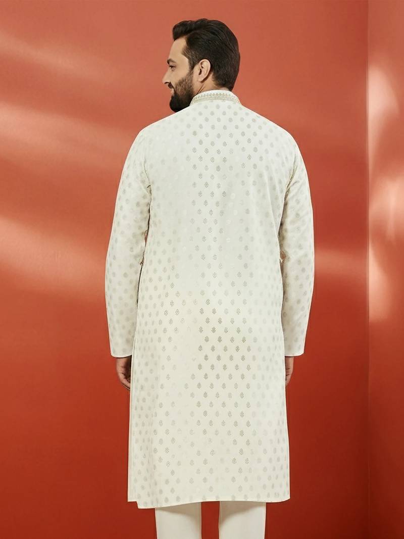 Product Name | Men's Cream Silk Jacquard Kurta Wedding Traditional Luxury | |