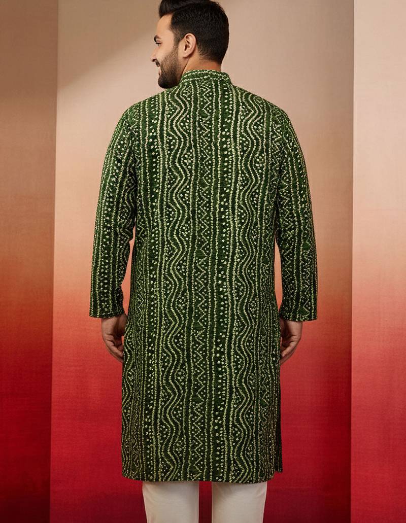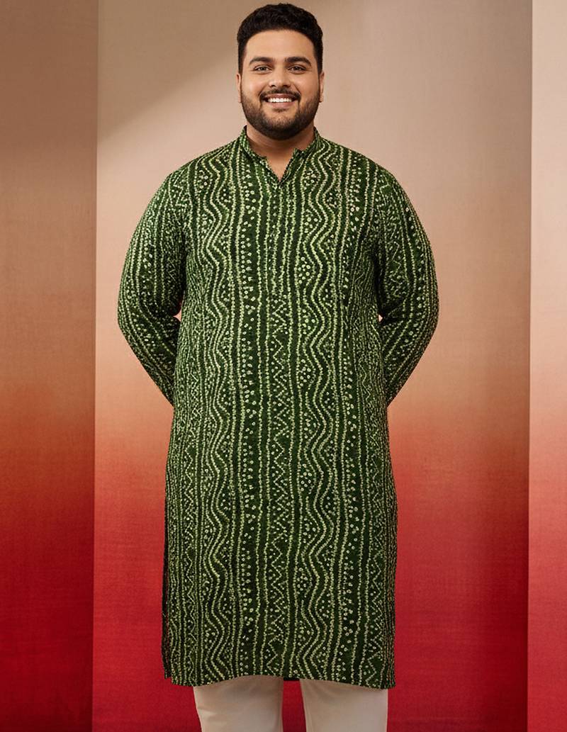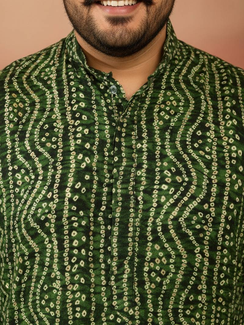 Product Name | Men's Green Bandhani Kurta Foil Print Traditional Festive | |