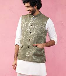 | Product Name | Mehendi Green Monty Jacquard Nehru Jacket Wedding Abstract Ethnic Wear | |