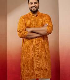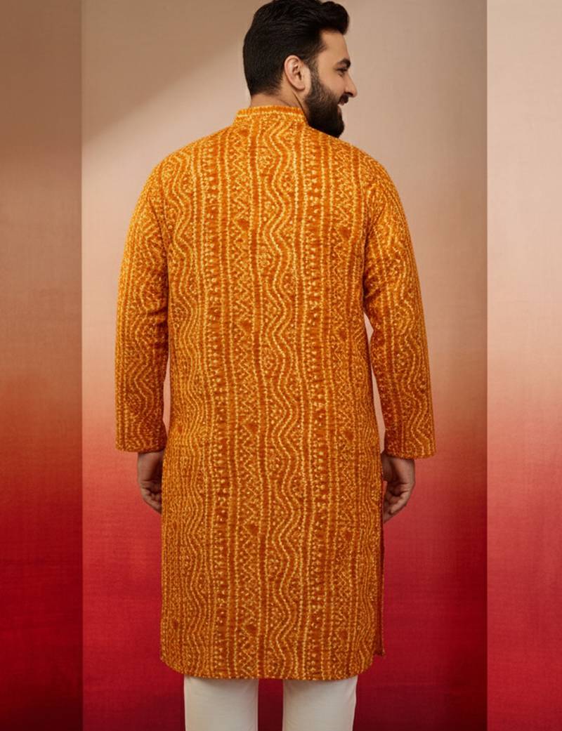 Product Name | Men's Mustard Bandhani Kurta Foil Print Traditional Festive | |