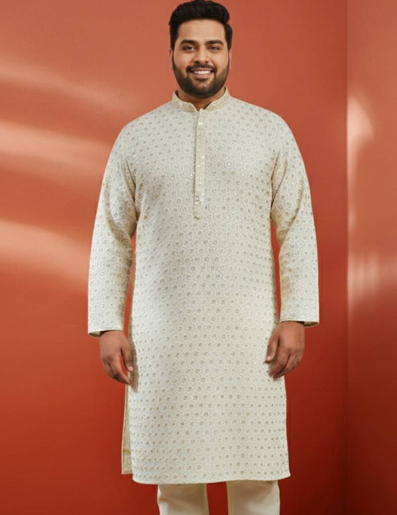 Men's off white sequin kurta - festive embroidered traditional