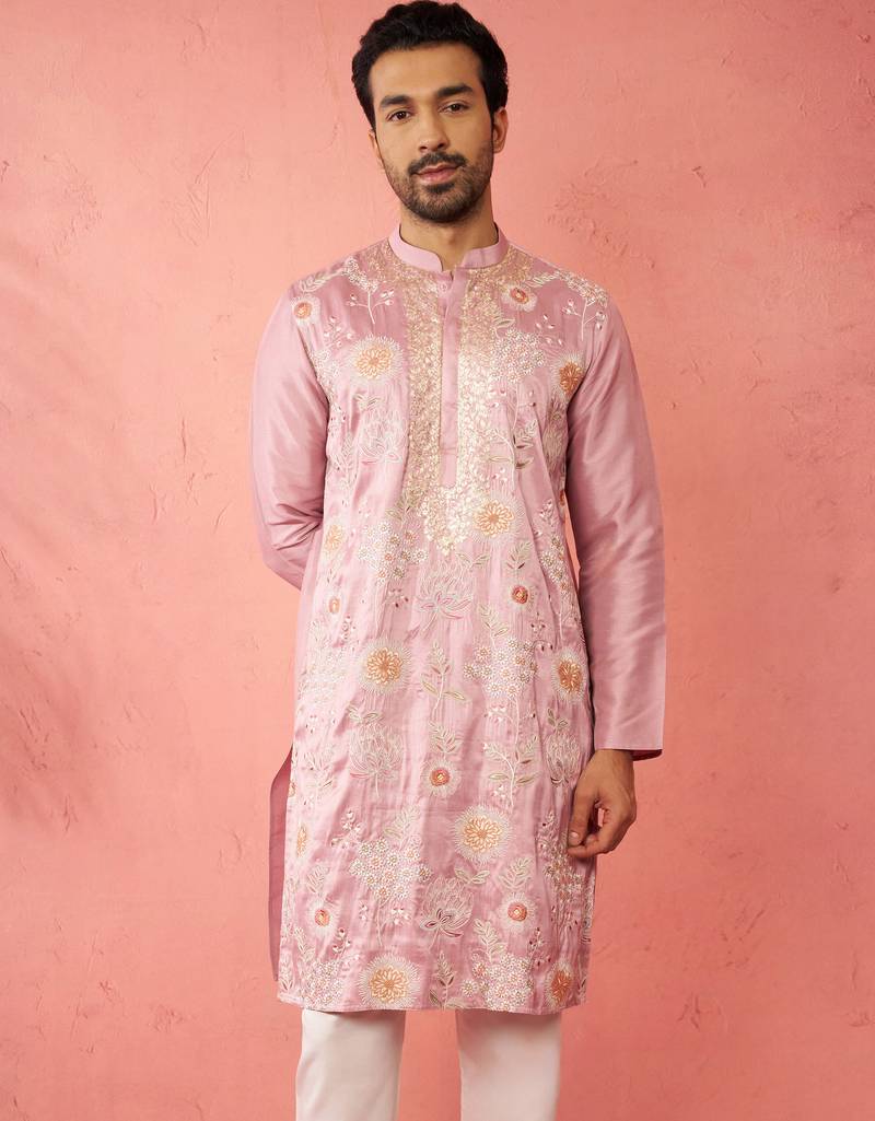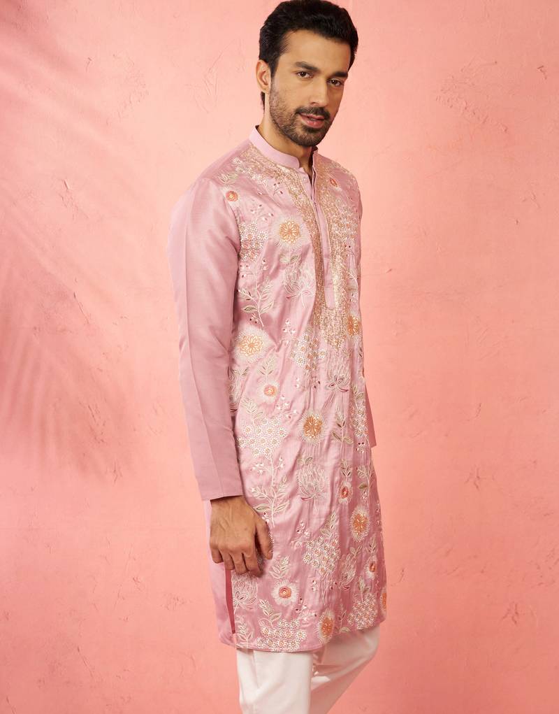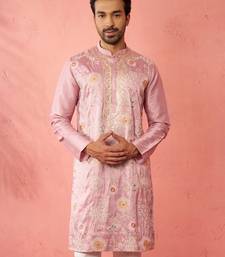 Men's onion silk blend kurta - traditional embroidered festive wear