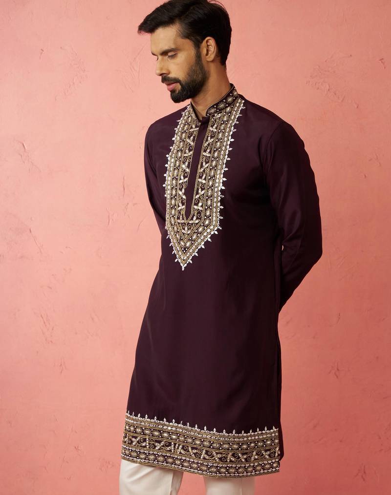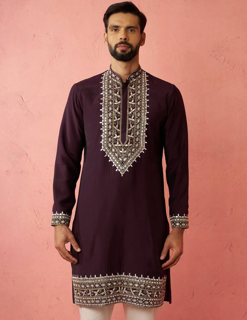 Purple modal chanderi kurta - wedding embroidered ethnic wear