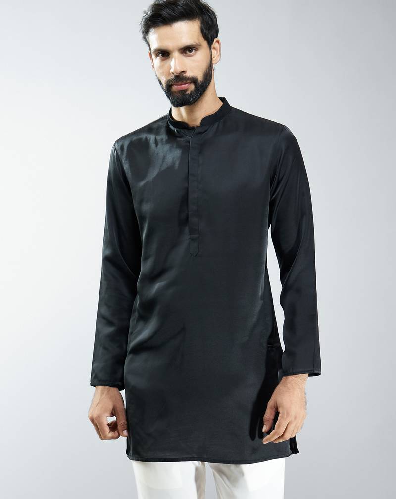 Men silk kurta solid mid-length kurta for wedding & festive wear