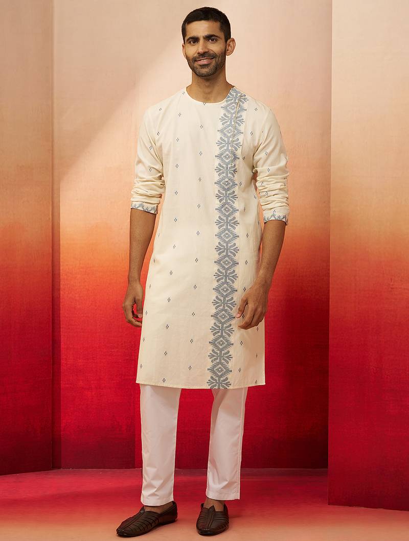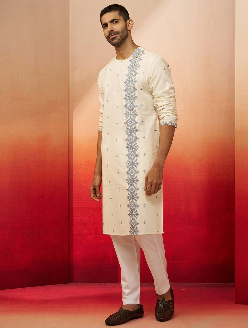 | Product Name | White Blue Jamdani Kurta Pyjama Set Navratri Ethnic Wear | |