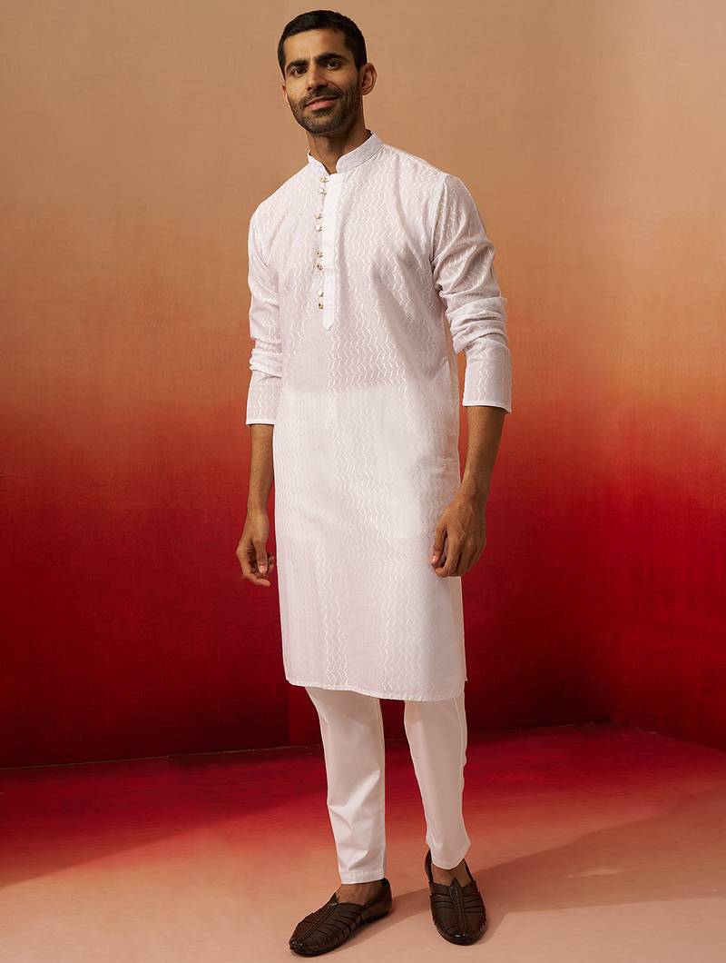 | Product Name | White Wave Pattern Kurta With Pyjama Elegant Geometric Set | |