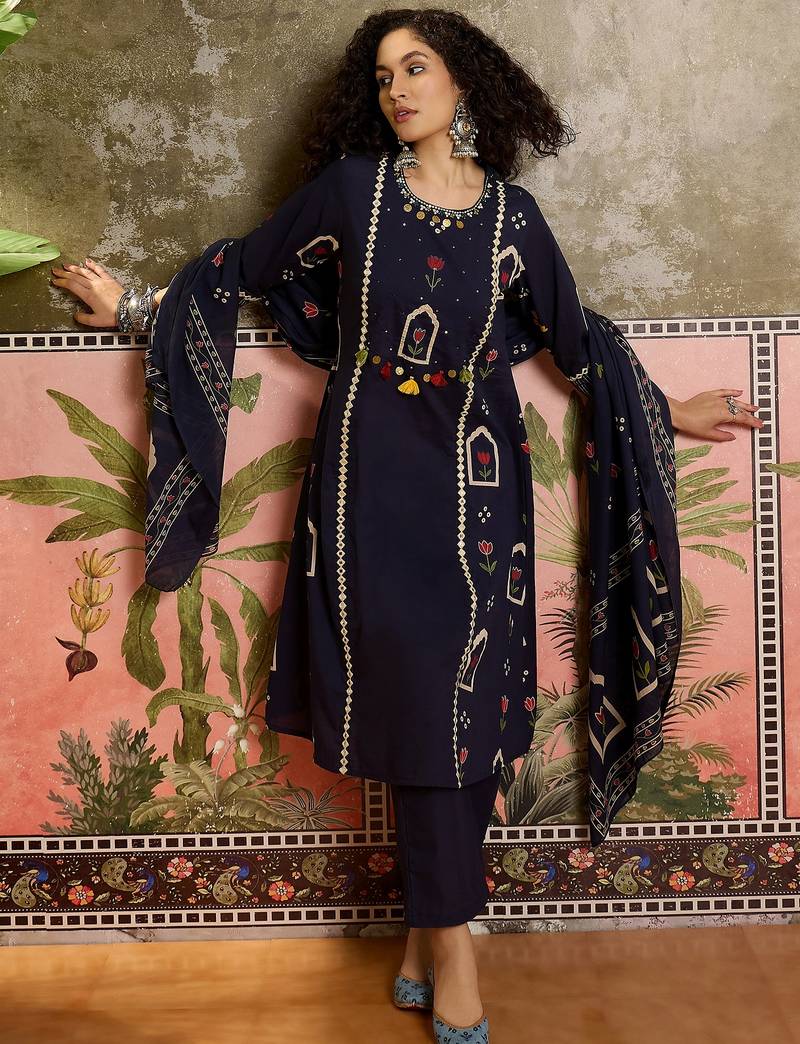 | Product Name | Blue Printed Kurta With Trousers & Dupatta Set | |