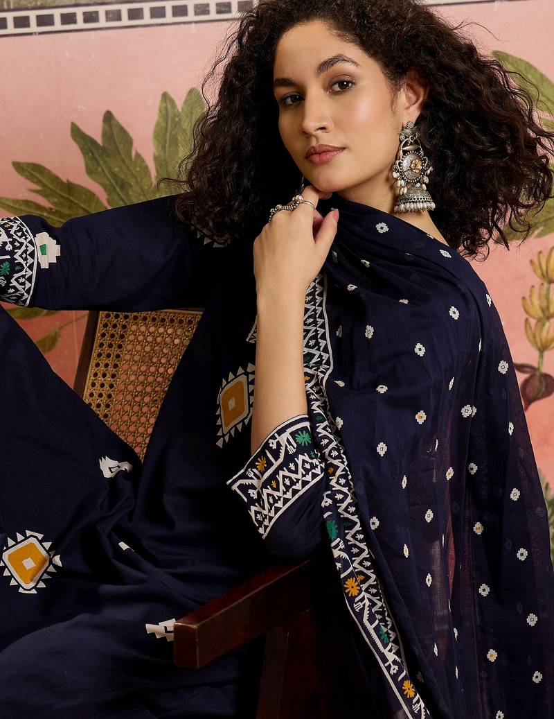 | Product Name | Blue Printed Kurta With Trousers & Dupatta Set | |