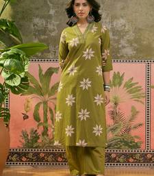 | Product Description | Green Floral Print Straight Kurta With Trousers & Dupatta, Straight Calf Length Kurta & Straight Hem, Has A V Neck, Three Quarter Regular Slevees, Solid Trousers Elasticated Waistband, Slip On Closure, Has A Pocket, Printed Dupatta, Has A Taping Border. |