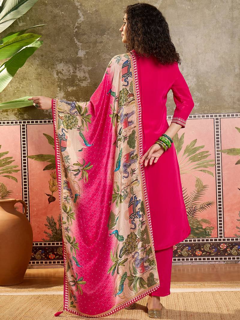 Rani plain kurta with trousers & dupatta set