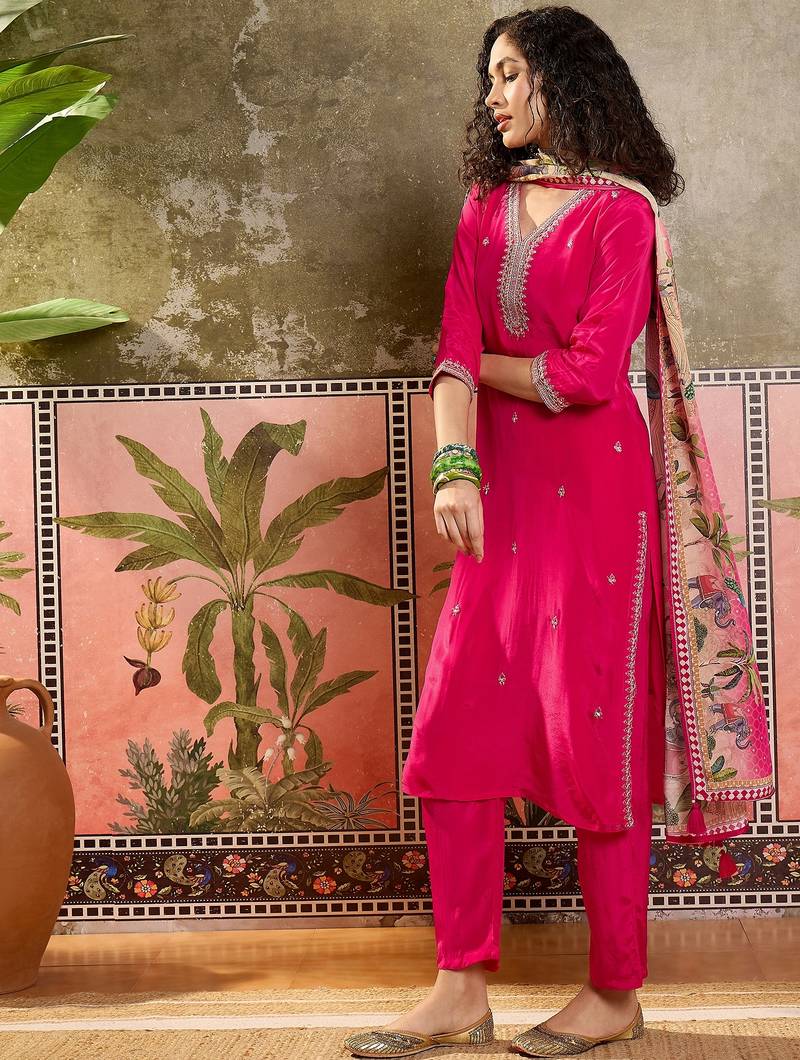 | Product Name | Rani Plain Kurta With Trousers & Dupatta Set | |