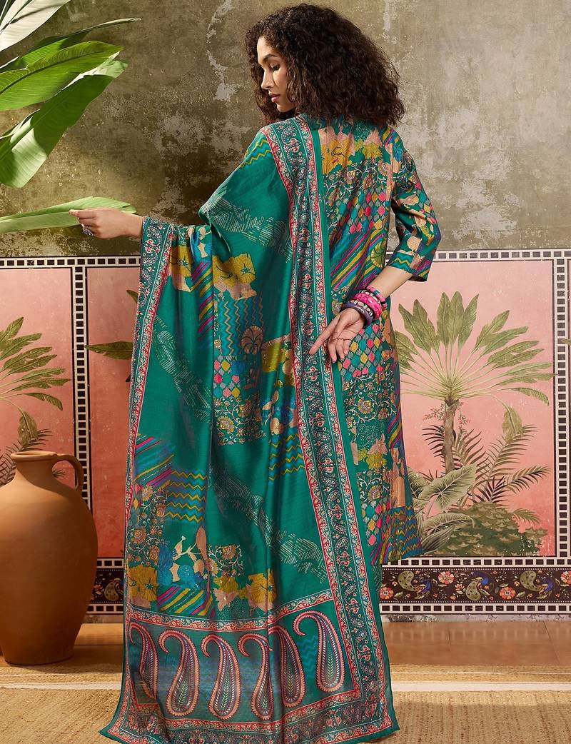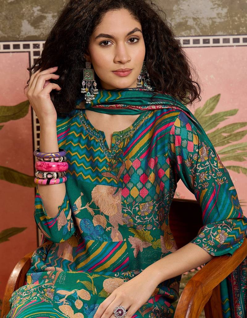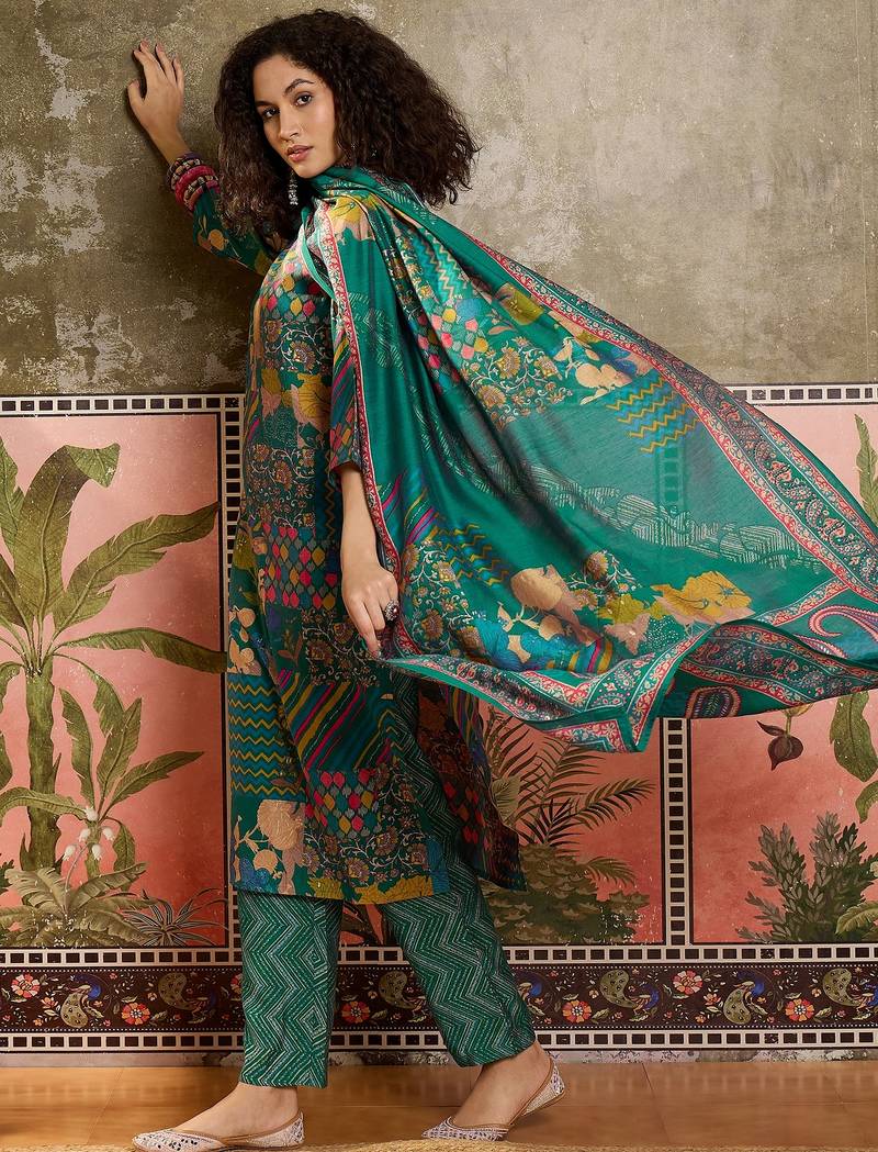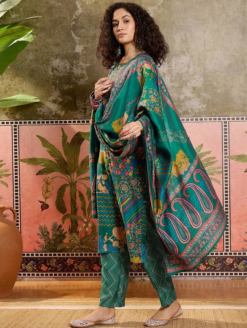 | Product Name | Teal Blue Printed Kurta With Trousers & Dupatta Set | |