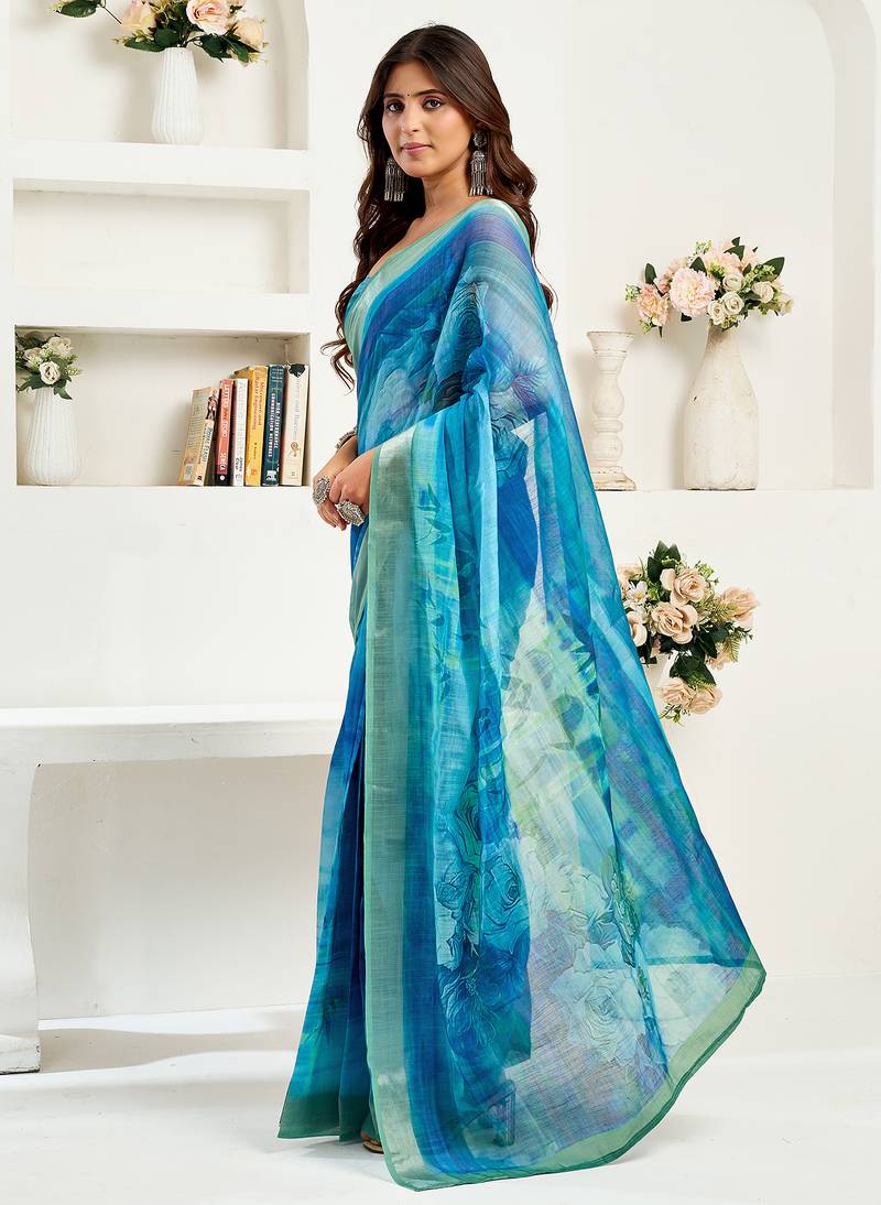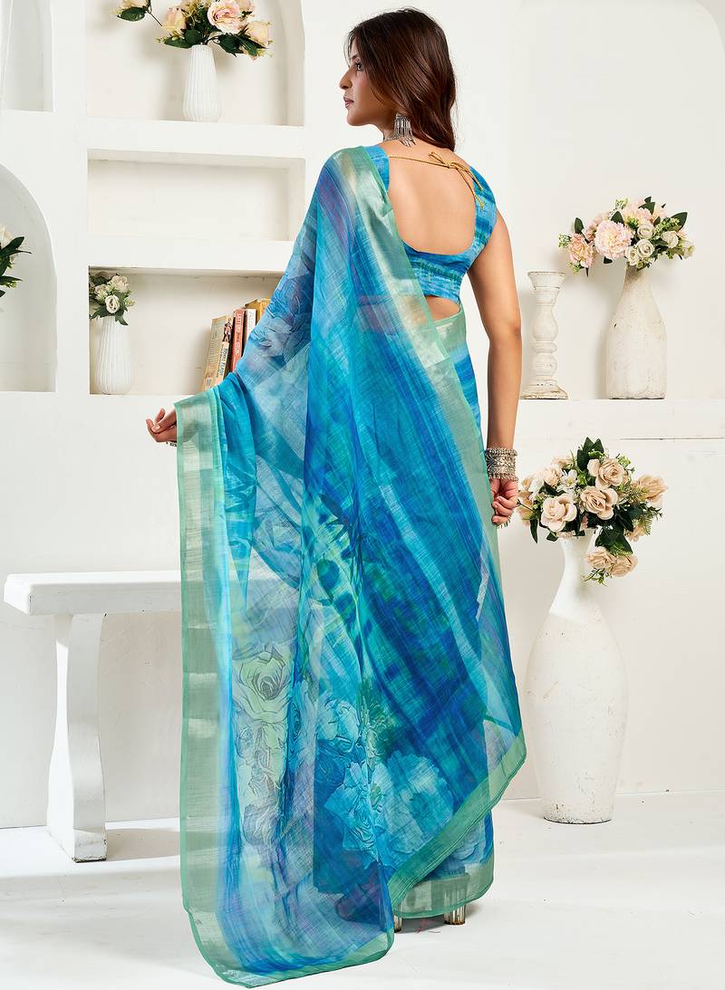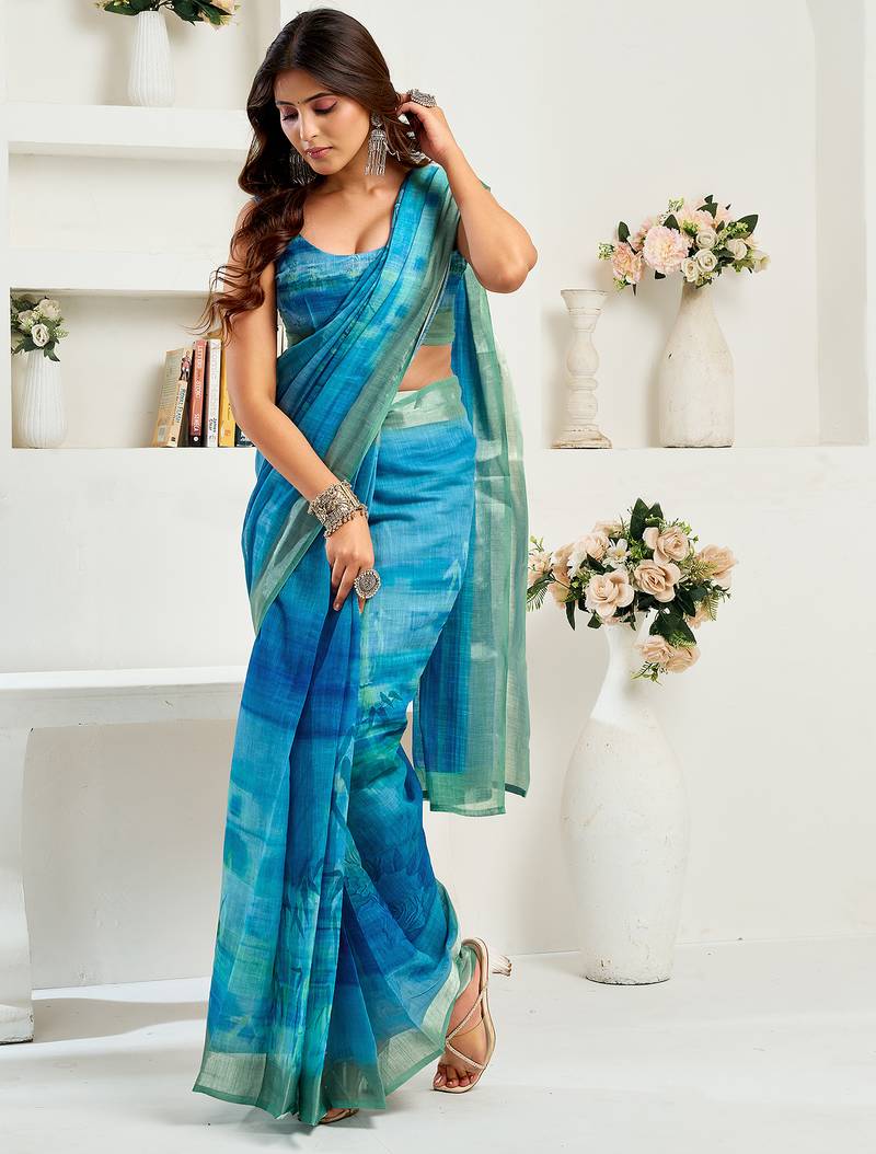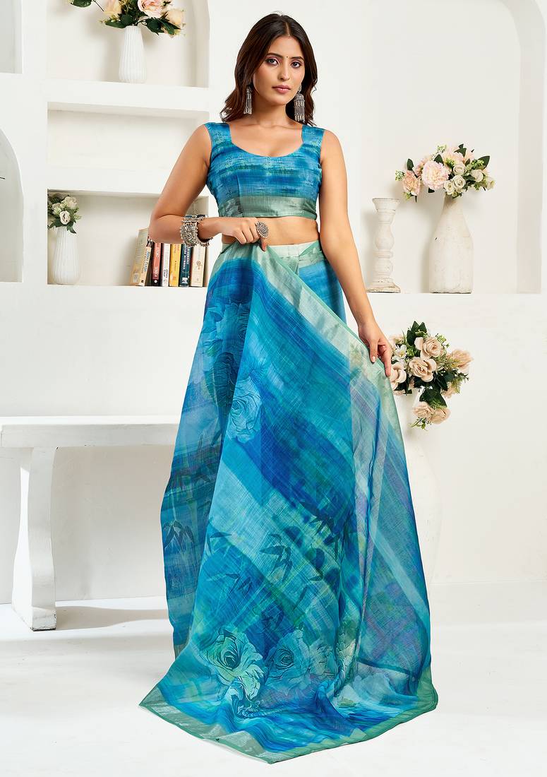 | Product Name | Aqua Blue Digital Printed Linen Ready To Wear Designer Saree With Unstitched Blouse | |