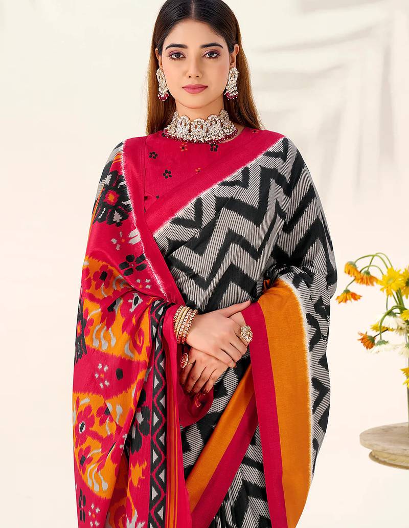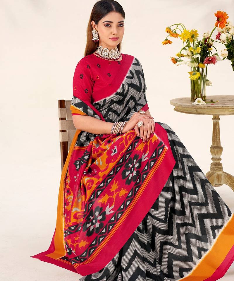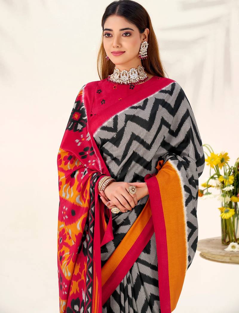 | Product Name | Black Tussar Silk Zigzag Waves Printed Saree With Unstitched Blouse | |