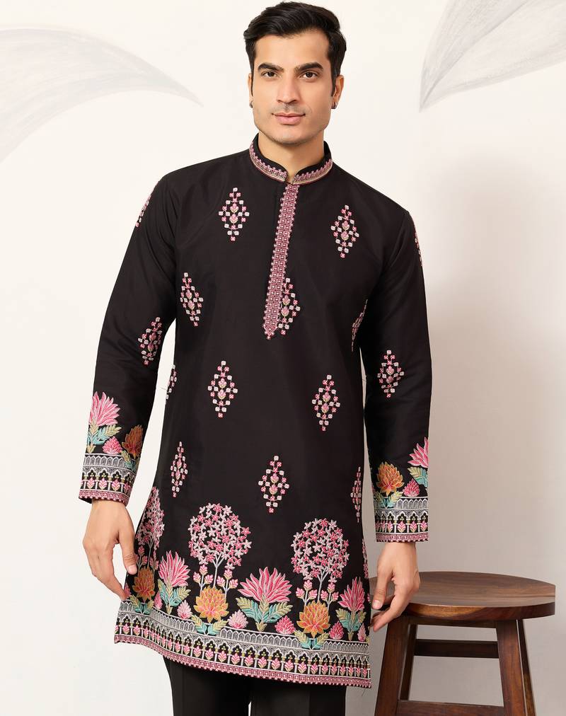| Product Name | Black Viscose Silk Thread With Sequence Embroidered Work Kurta Only | |