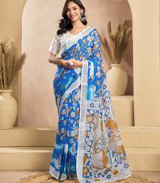 | Product Name | Blue Digital Printed Linen Ready To Wear Designer Saree With Unstitched Blouse | |