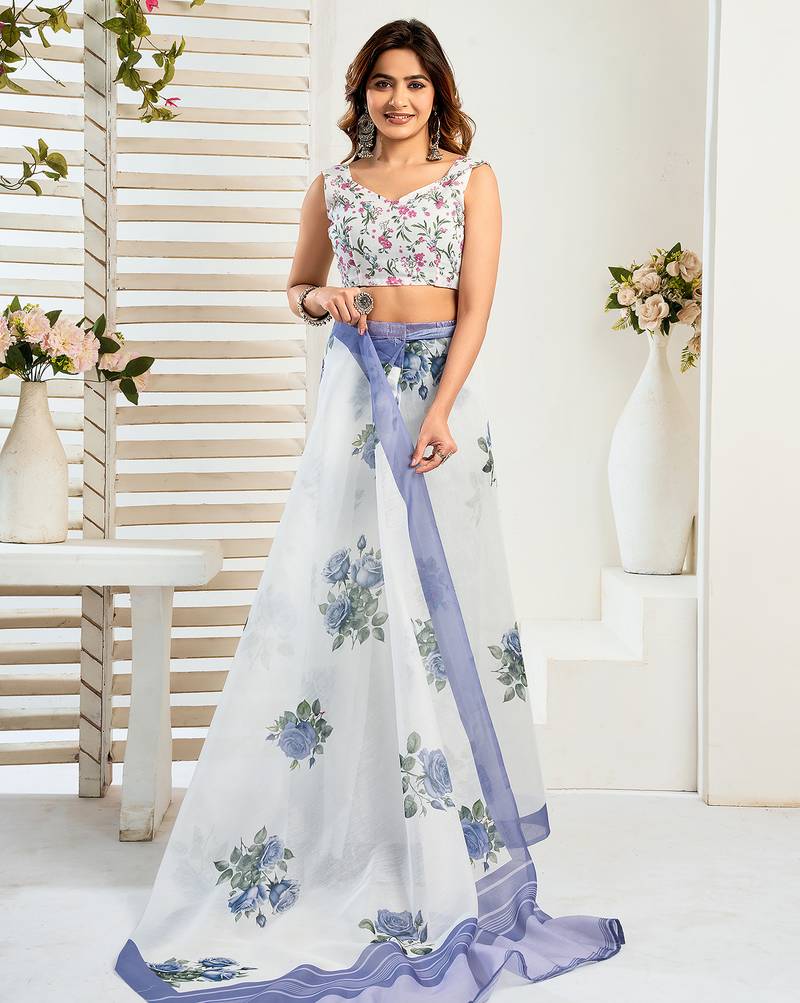 | Product Name | Blue Digital Printed Linen Ready To Wear Designer Saree With Unstitched Blouse | |