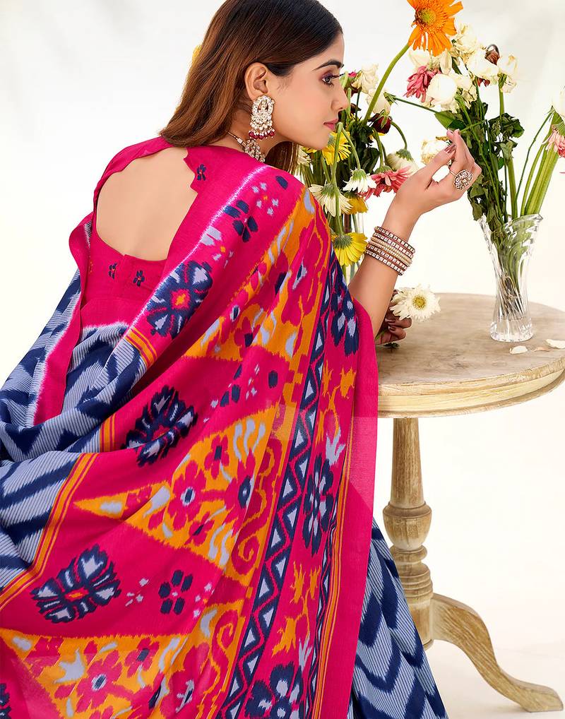| Product Name | Blue Tussar Silk Zigzag Waves Printed Saree With Unstitched Blouse | |