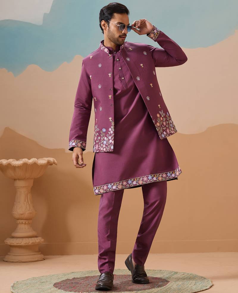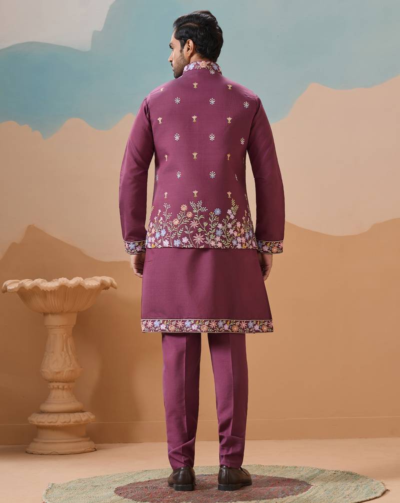 | Product Name | Dusty Pink Viscose Silk Multi Thread With Sequence Embroidered Work Kurta Jacket & Bottom | |