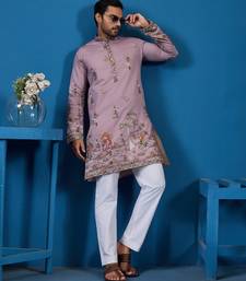 Dusty pink viscose silk threads & sequence embroidered work kurta