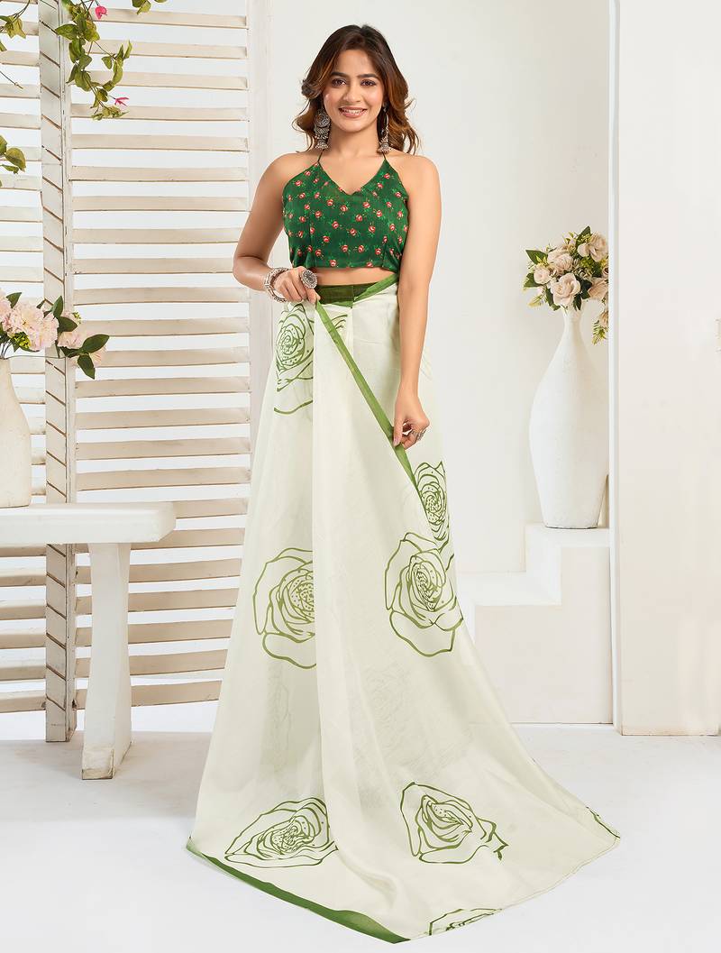 | Product Name | Green Digital Printed Linen Ready To Wear Designer Saree With Unstitched Blouse | |