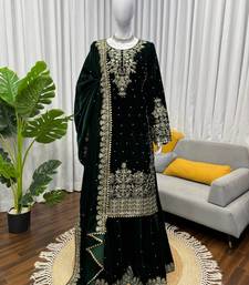 | Product Description | Traditional Velvet Designer Embroidery Work Wear Kurta Bottom Pair With Dupatta Fabric Details :