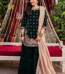 Green viscose velvet intricate thread & sequence with peral work top plazzo with dupatta stitched