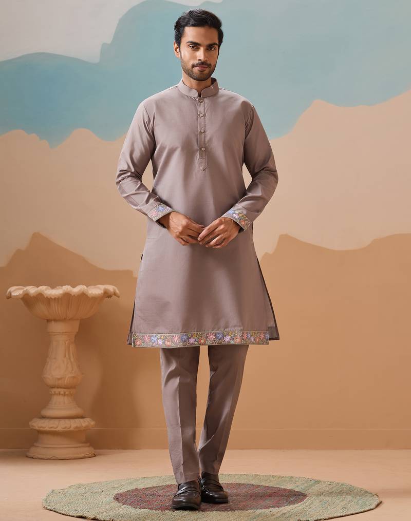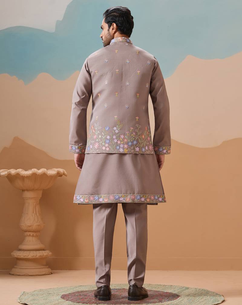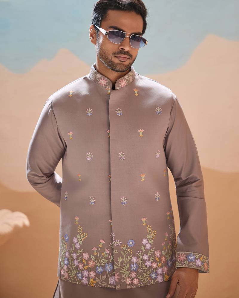 | Product Name | Grey Viscose Silk Multi Thread With Sequence Embroidered Work Kurta Jacket & Bottom | |