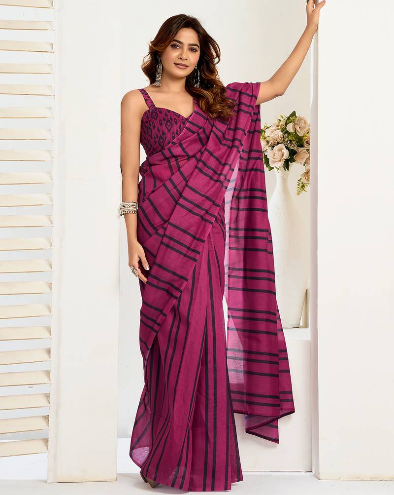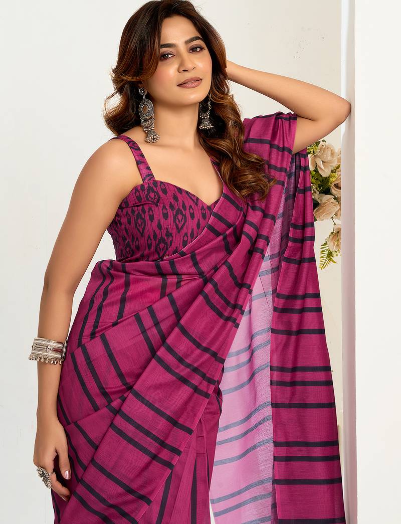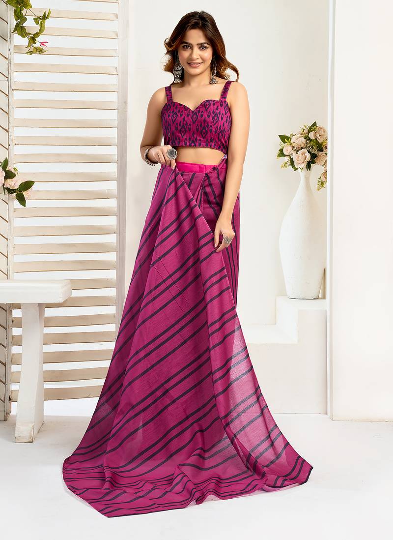 | Product Name | Magenta Digital Printed Linen Ready To Wear Designer Saree With Unstitched Blouse | |