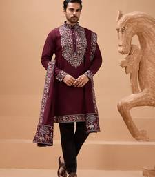 Maroon viscose silk thread with sequence embroidered work kurta with dupatta