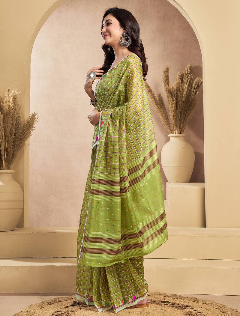 | Product Name | Mehendi Digital Printed Linen Ready To Wear Designer Saree With Unstitched Blouse | |