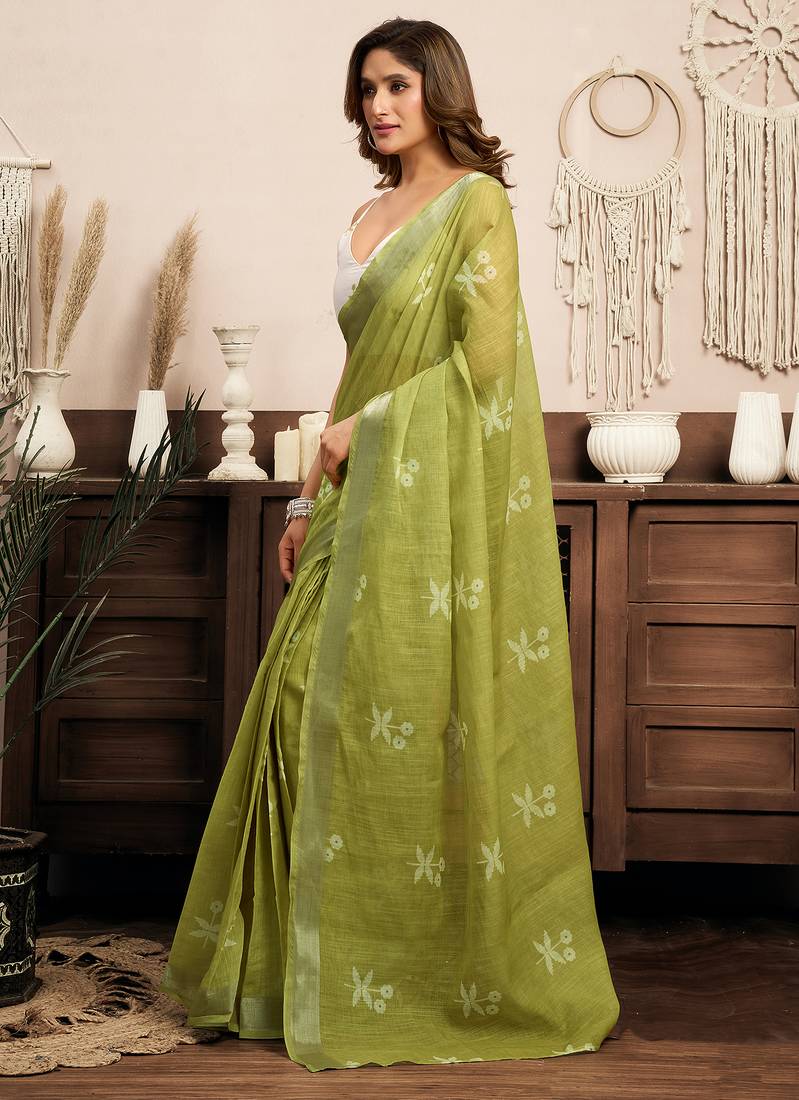 | Product Name | Mehendi Digital Printed Linen Ready To Wear Designer Saree With Unstitched Blouse | |