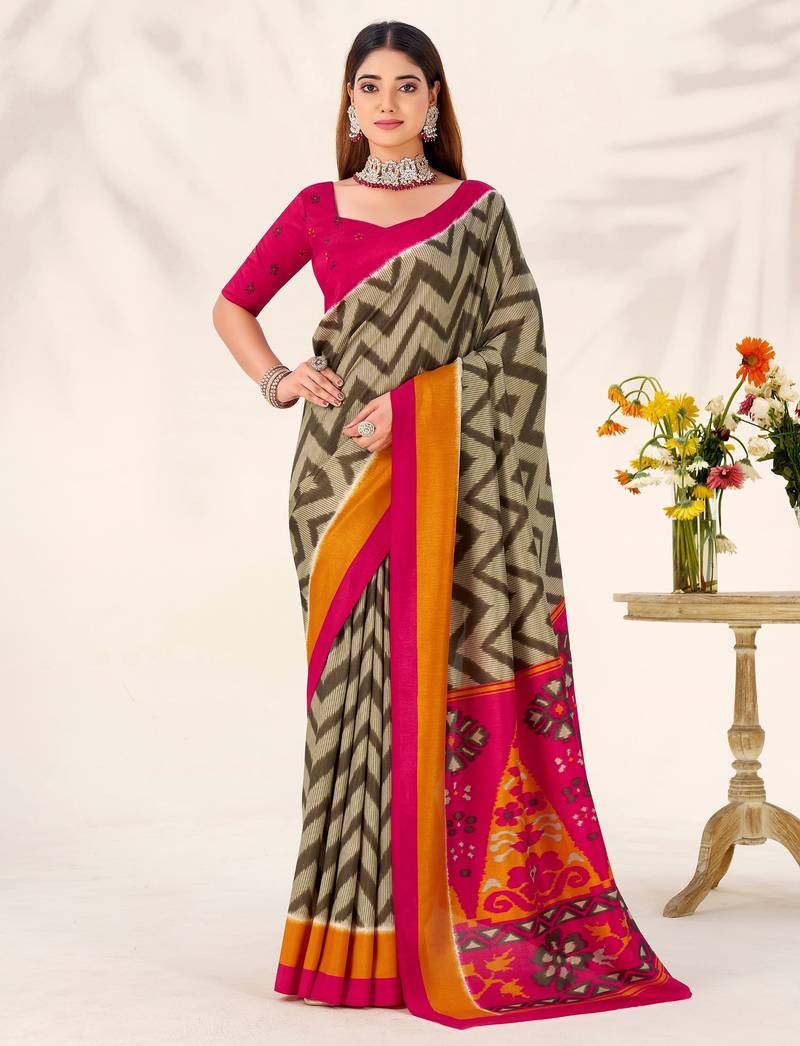 | Product Name | Mehendi Tussar Silk Zigzag Waves Printed Saree With Unstitched Blouse | |
