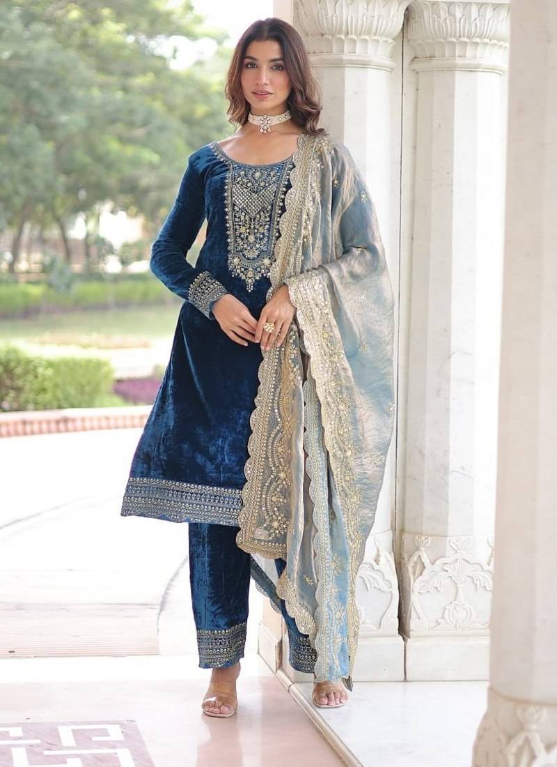 | • | Kameez | : | Color- Teal / Fabric- Velvet |