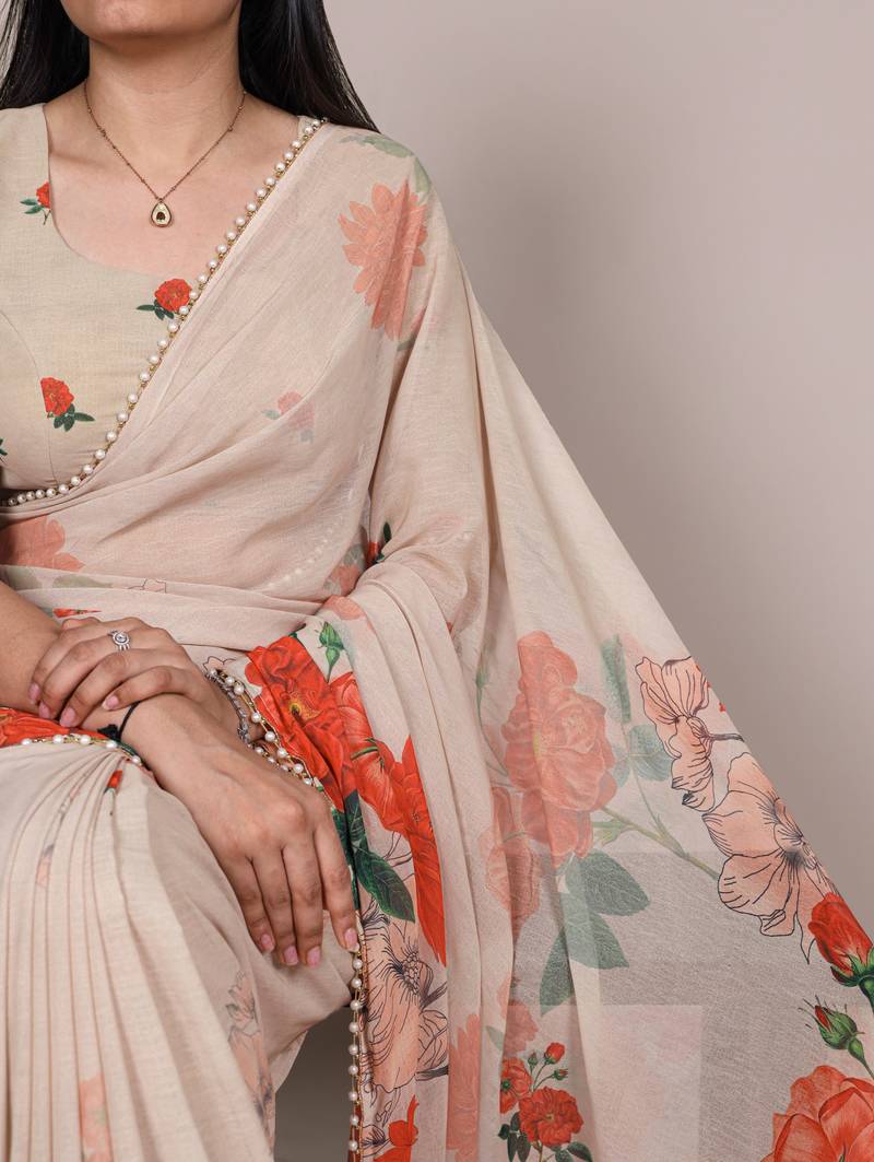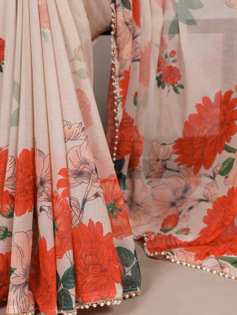 | Product Description | This Weightless Marble And Floral Printed Saree With Delicate Pearl Lace Border Is Perfect For Effortless Glam. Saree