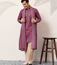 Pink viscose silk thread with sequence embroidered work kurta dupatta