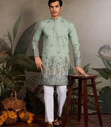 Pista green viscose silk thread with sequence embroidered work kurta only