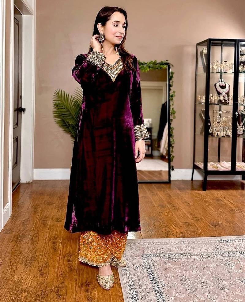 | • | Kameez | : | Color- Purple / Fabric- Velvet |