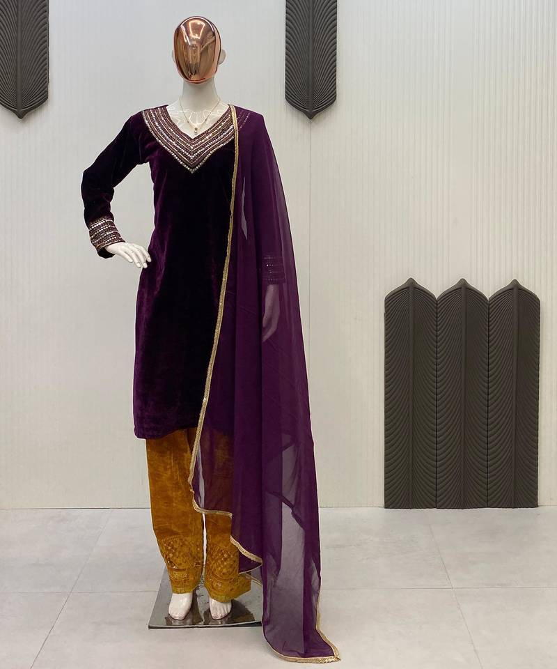 | Product Name | Purple Velvet Sequence Embroidery With Real Mirror Work Suit & Plazzo With Dupatta | |