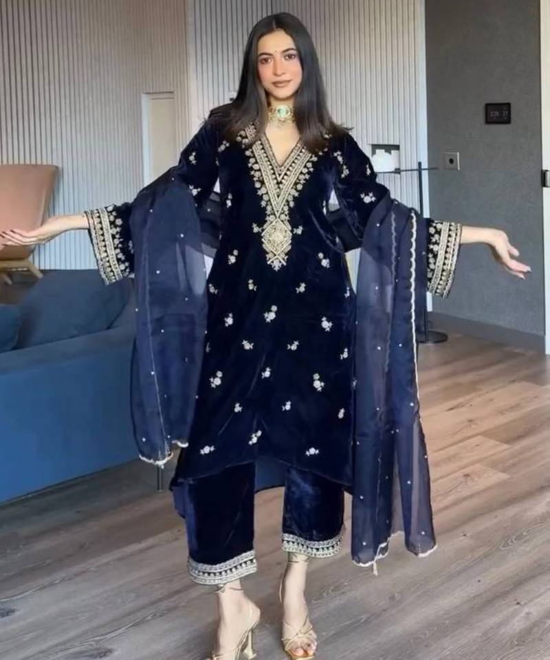 | • | Kameez | : | Color- Navy Blue / Fabric- Velvet |