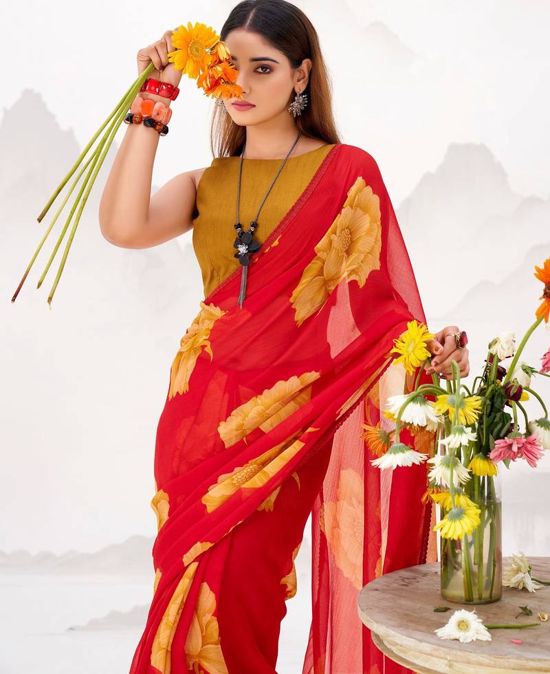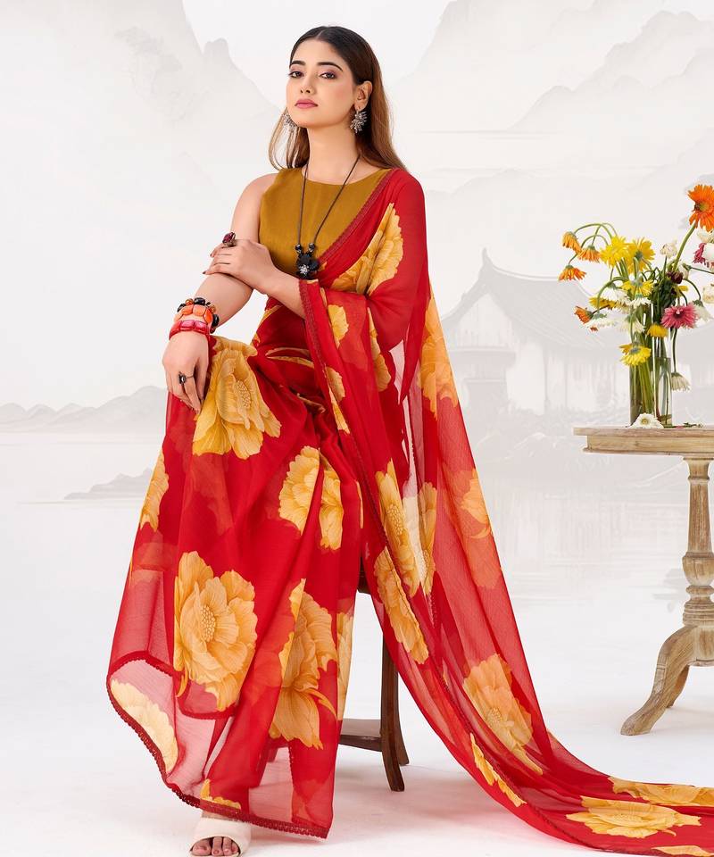 | Product Name | Red Floral Print With Lace Border Work Chiffon Saree & Unstitched Blouse | |