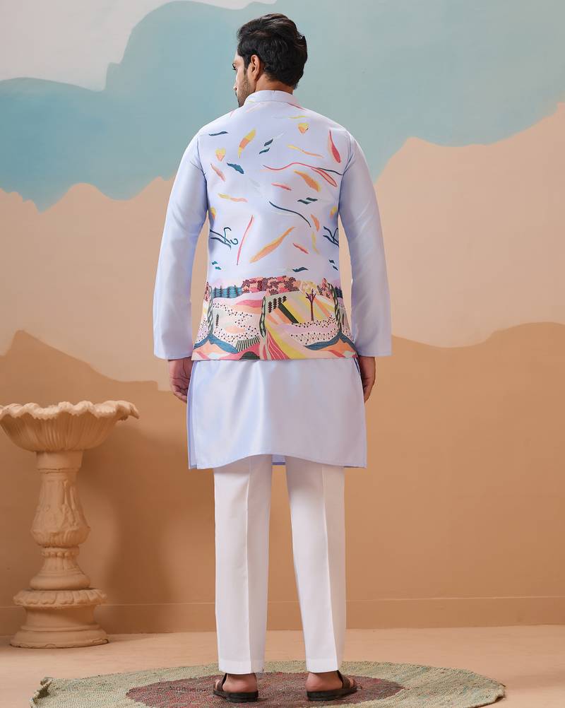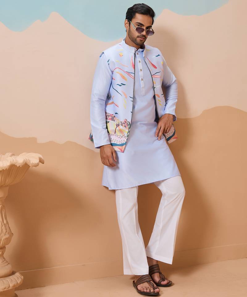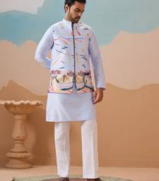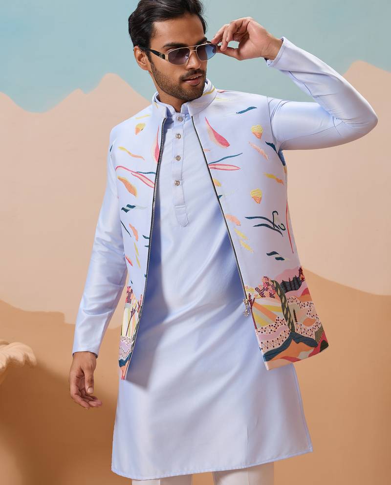 | Product Name | Sky Blue Silk Multi Thread With Embroidered Work Kurta Jacket & Bottom | |