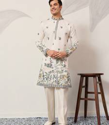 White viscose silk thread with sequence embroidered work kurta only