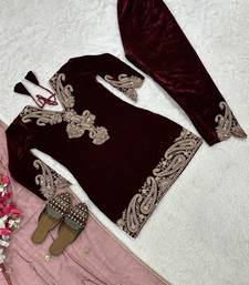 | Product Name | Wine Viscose Velvet Cording Sequence Embroidery Work Suit Bottom With Dupatta | |